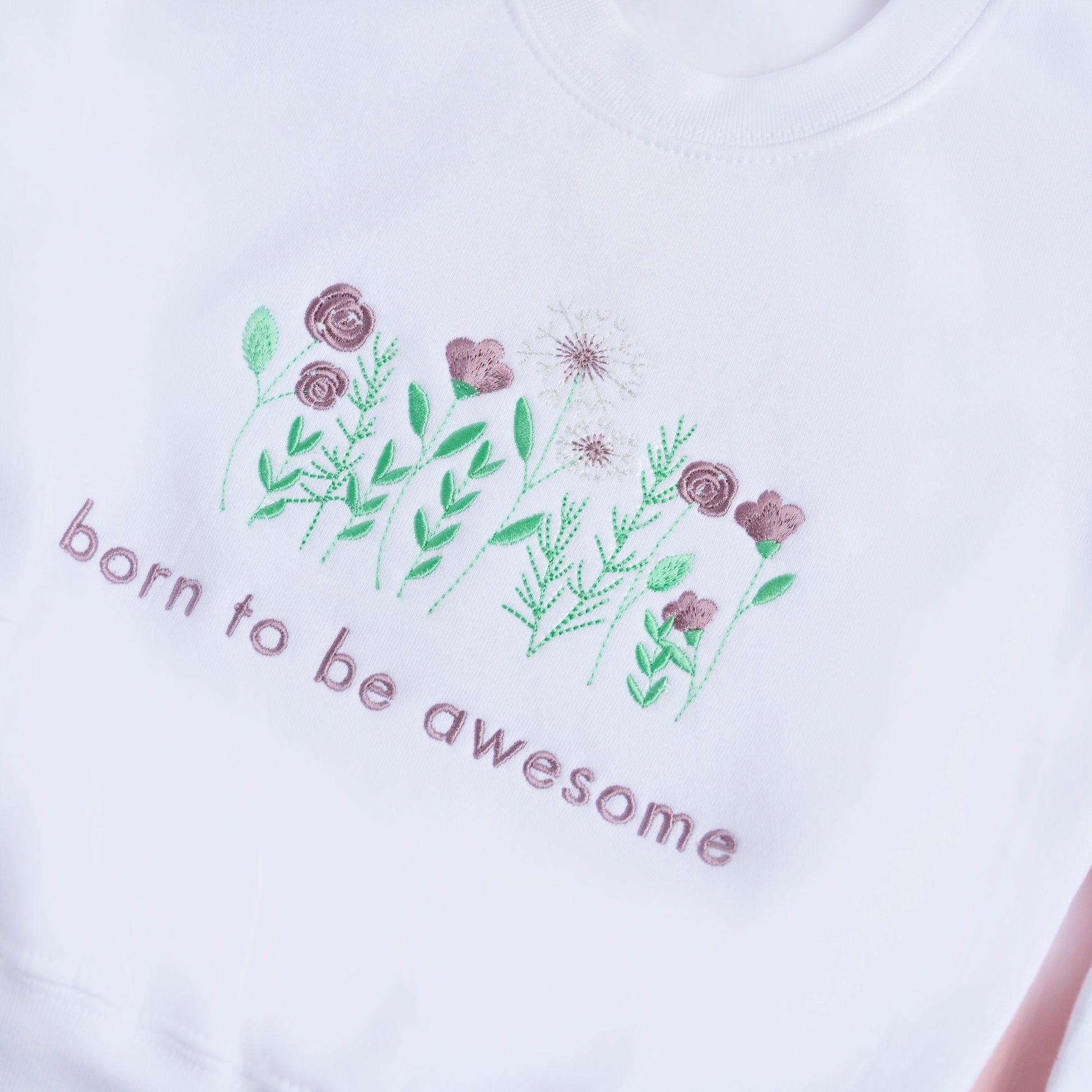 Our kids sweatshirt with unique flower embroidery and slogan "Born to be Awesome" is the perfect addition to your little one's wardrobe. Made with soft and comfortable material, this hoodie will keep your child warm and cozy all day long.