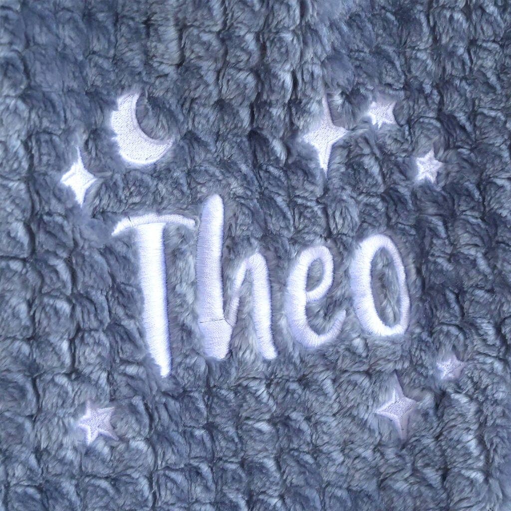 The blanket can be personalised (embroidered) with up to 15 characters.